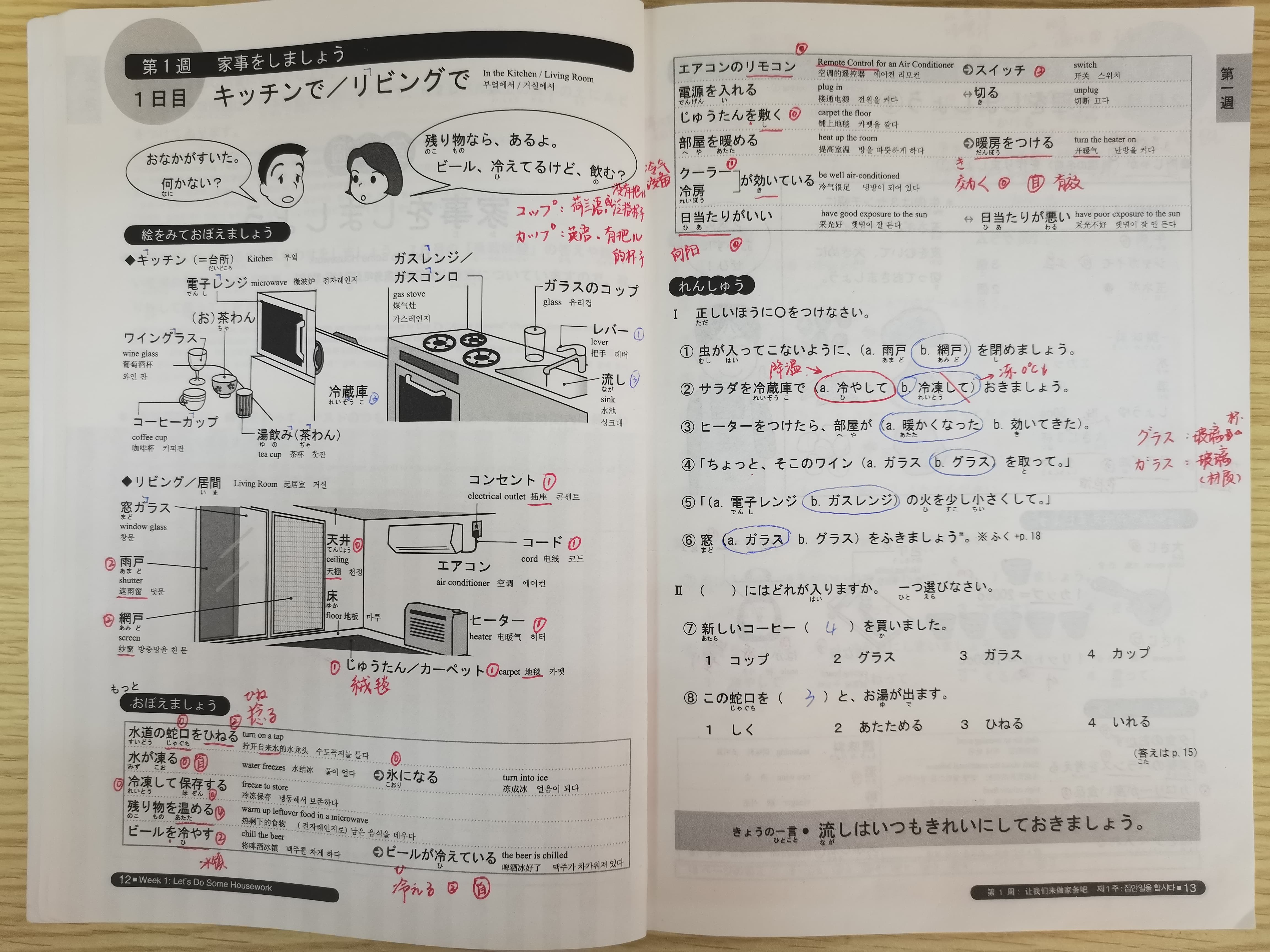| 雑巾 を濡らす/が濡れる | 沾湿抹布/抹布湿了 |