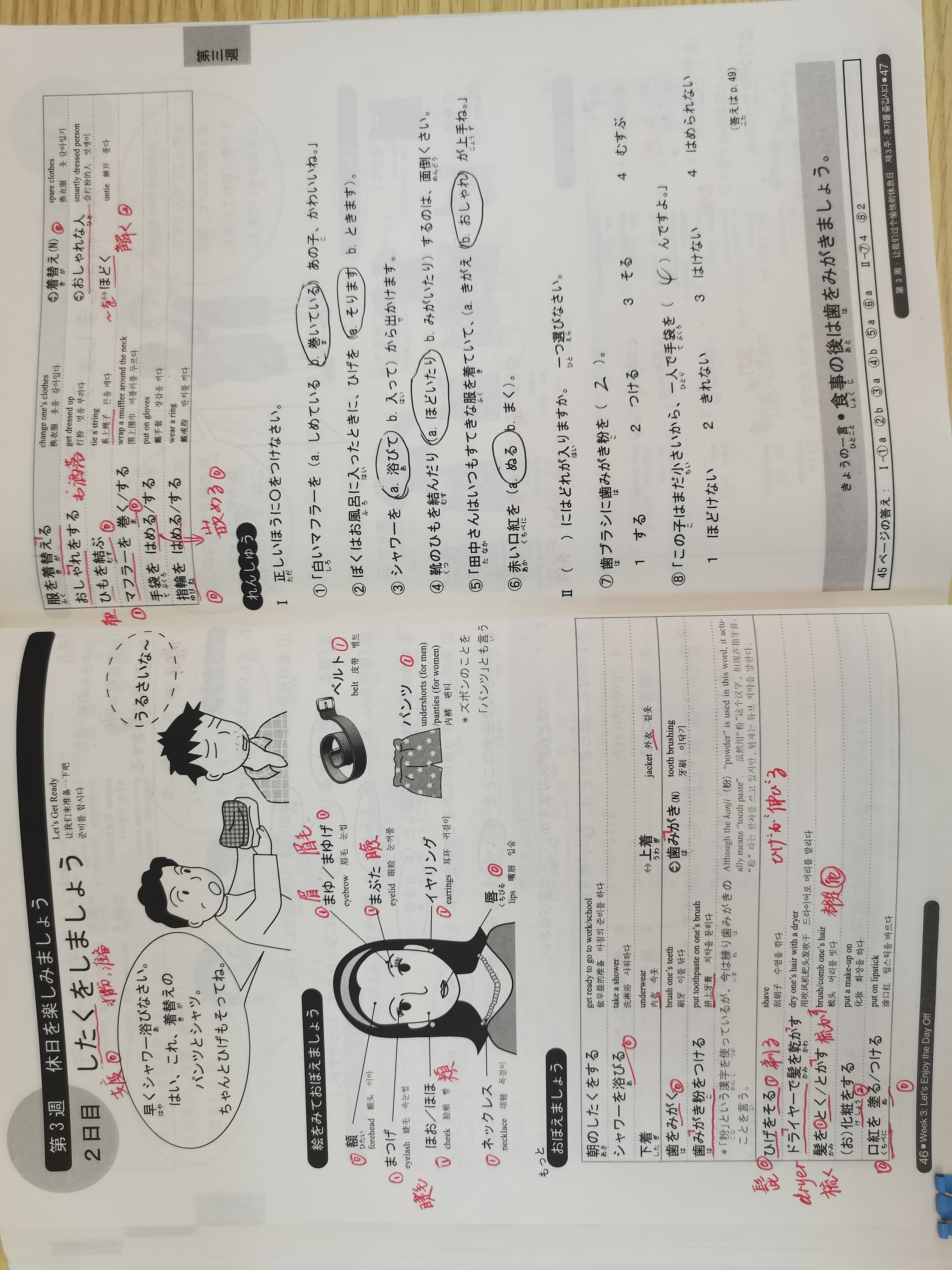 | ボタンを かける(=結ぶ)/外す | 系扣子/解扣子 |