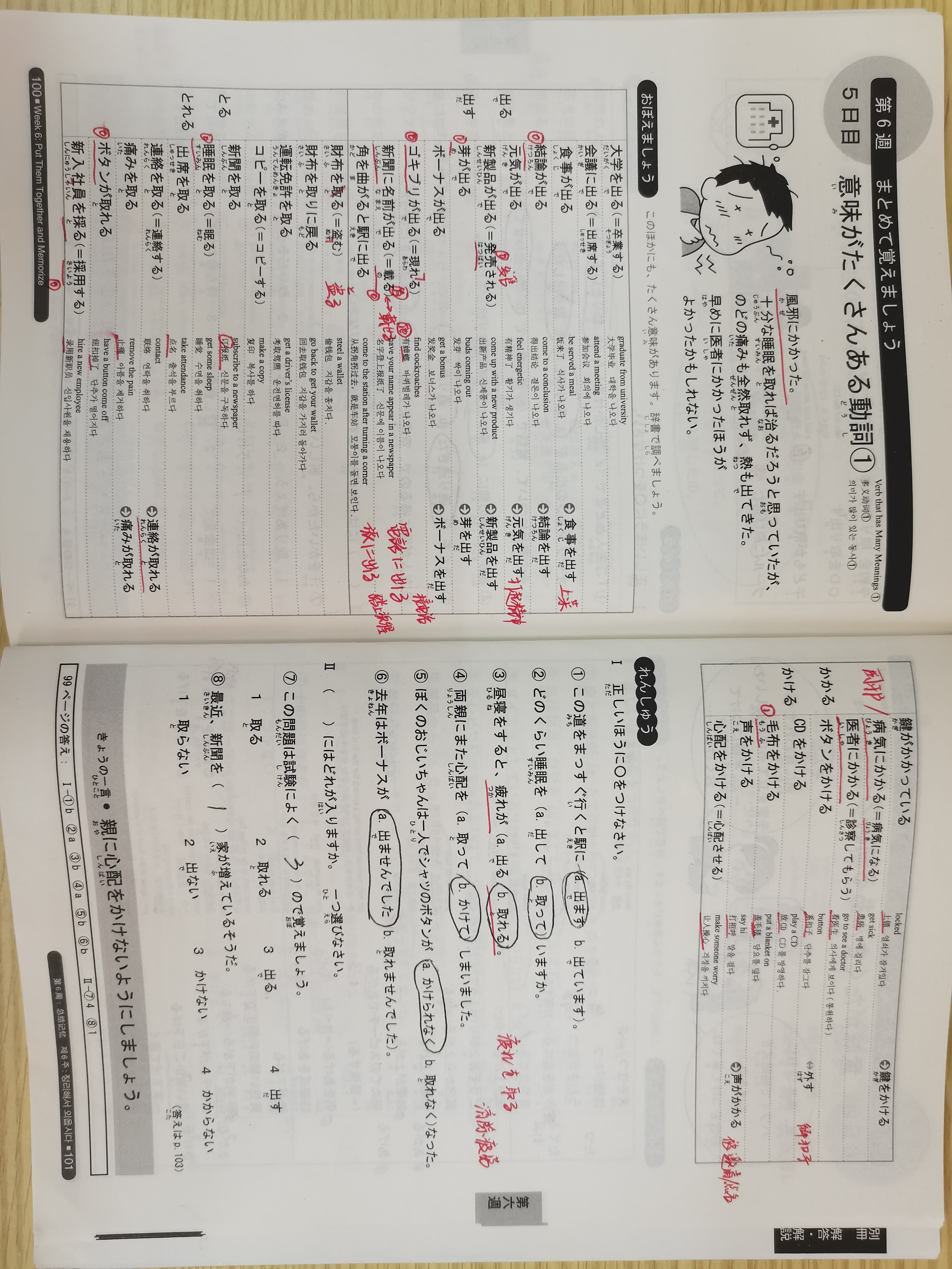 | 病気/風邪 にかかる(罹る) | 患病/患感冒 |