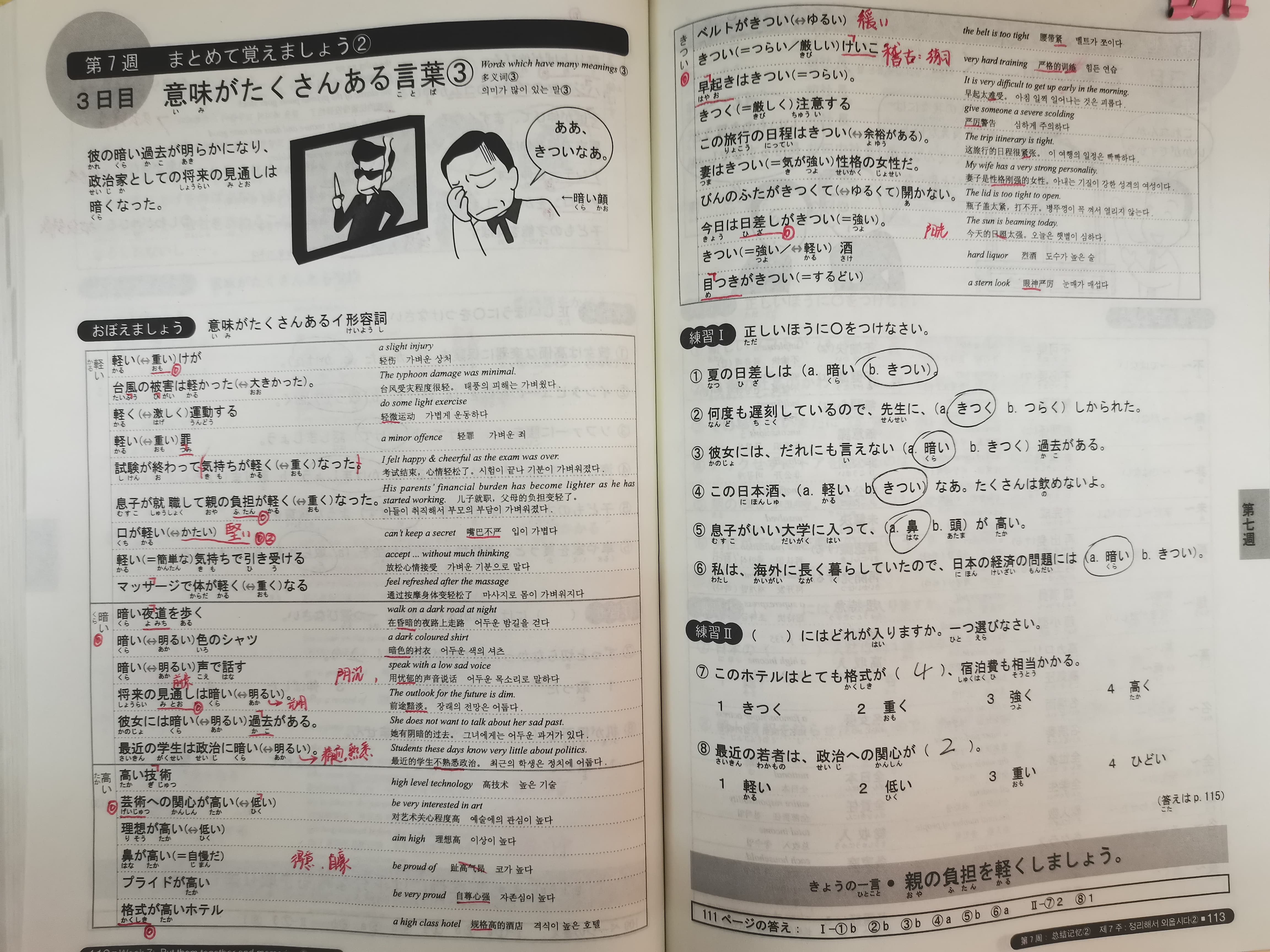 | 最近の学生は政治に 暗い/明るい。 | 最近的学生对政治不熟悉/精通。 |