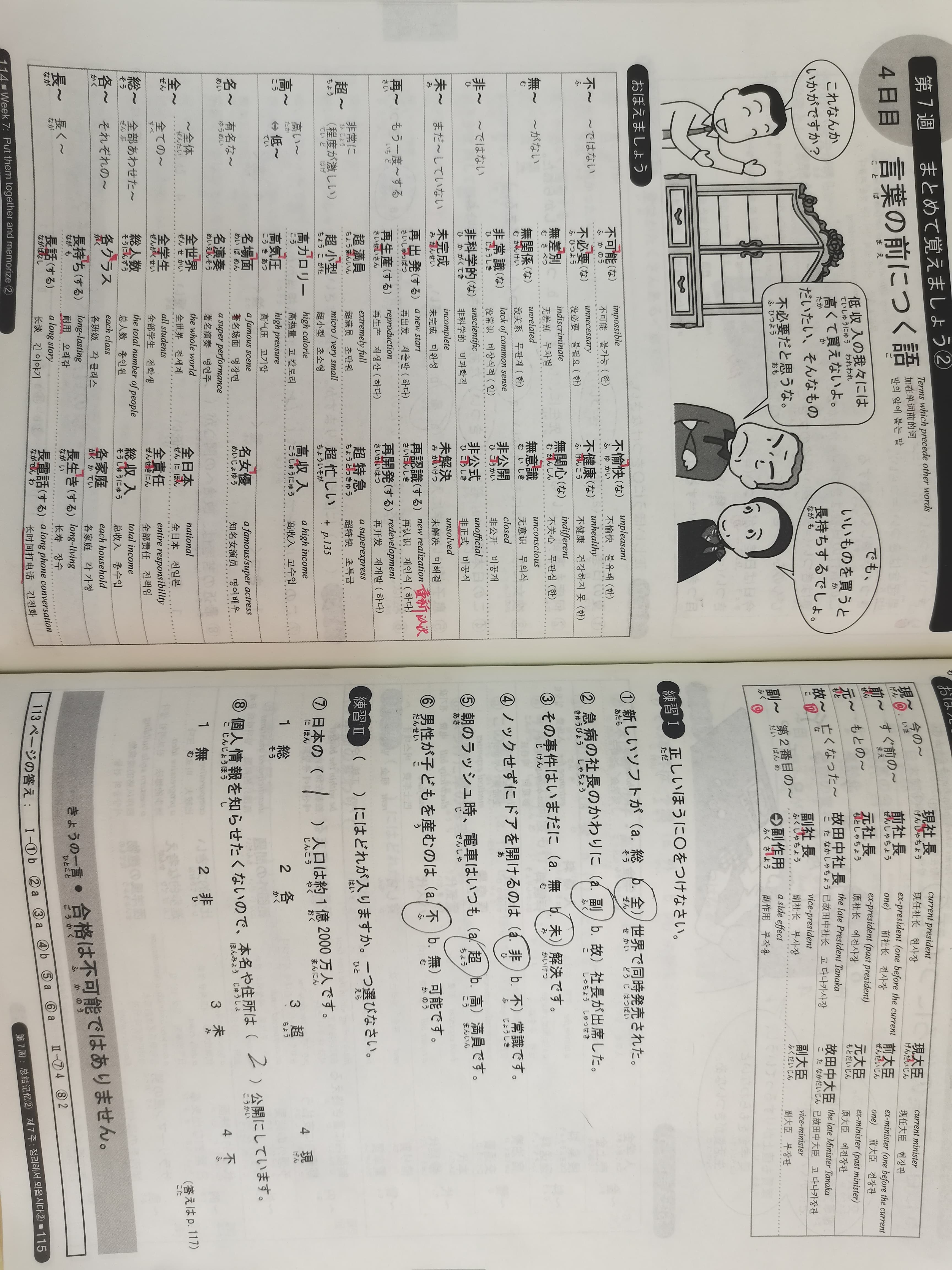 | 不~ | 不可能 不愉快 不必要 不健康 |
