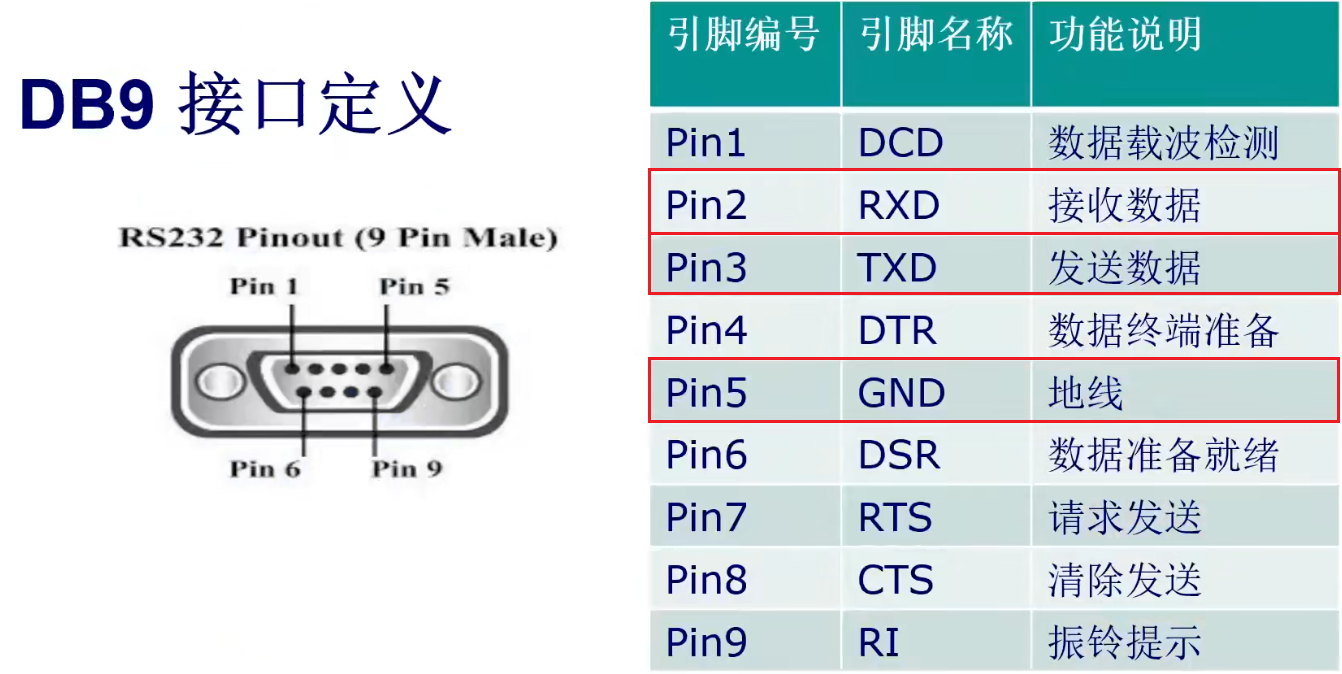 常见的RS232接口。主要关注RXD、TXD、GND引脚。