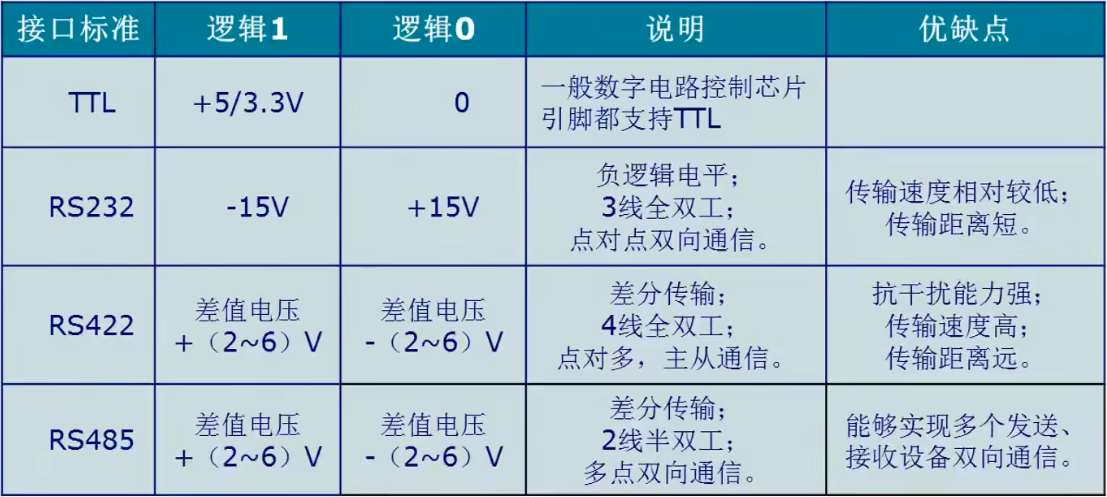 RS422和RS485是差分传输。差分传输:两组信号相位相反,接收时用它们的差值来判断01,对共模噪声(两根线分别对地的噪声)抑制好。