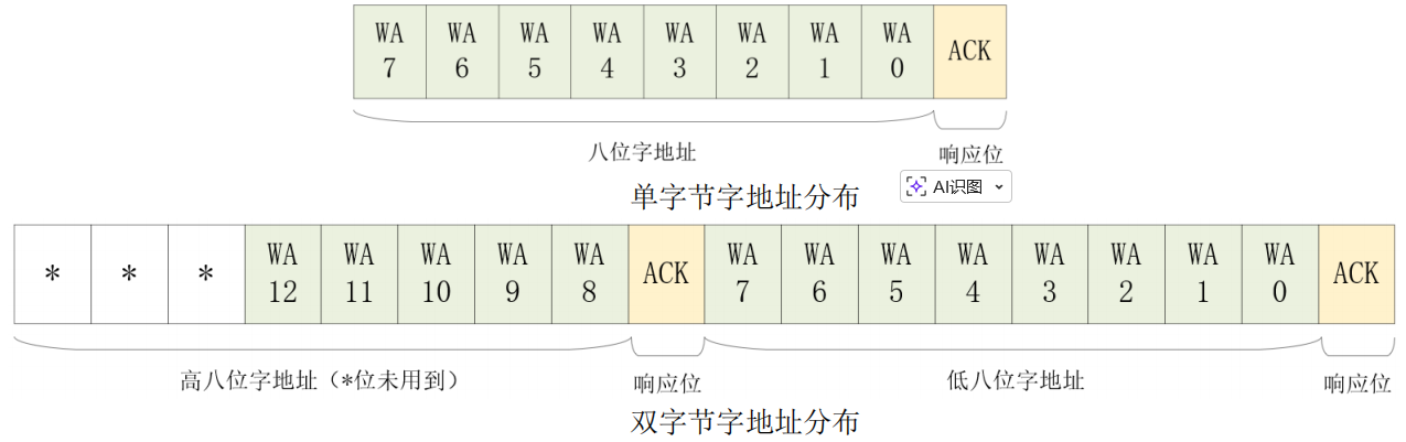 发送完器件地址后需要发送具体读写的地址,即下面的存储地址(字地址)。